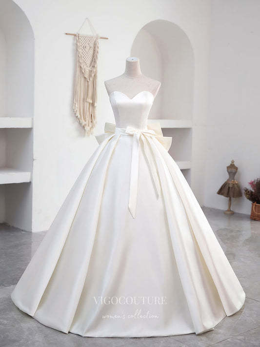 Vestido de fiesta de satén color marfil con mangas abullonadas y lazo 20866