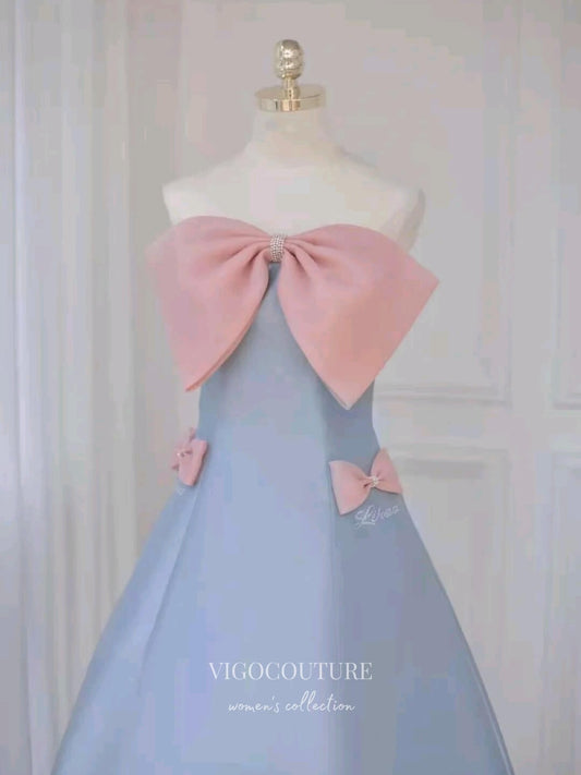 Vestidos de fiesta azul claro con lazo y sin tirantes 21441