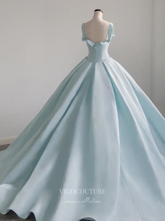 Vestido de fiesta de satén azul claro con tirantes anchos, vestido formal 21043