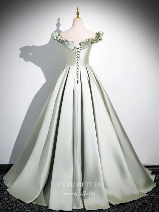 Vestidos de fiesta económicos con hombros descubiertos en verde claro 2025, vestido formal de satén 25066