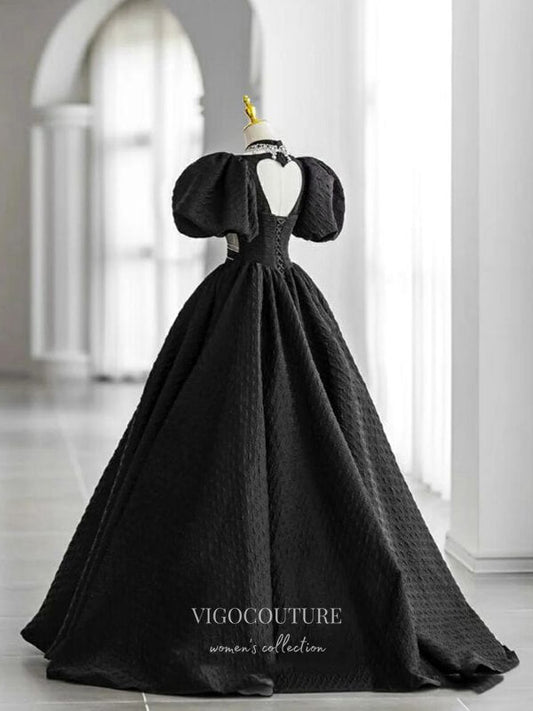 Vestidos de fiesta negros de jacquard con mangas abullonadas 21443