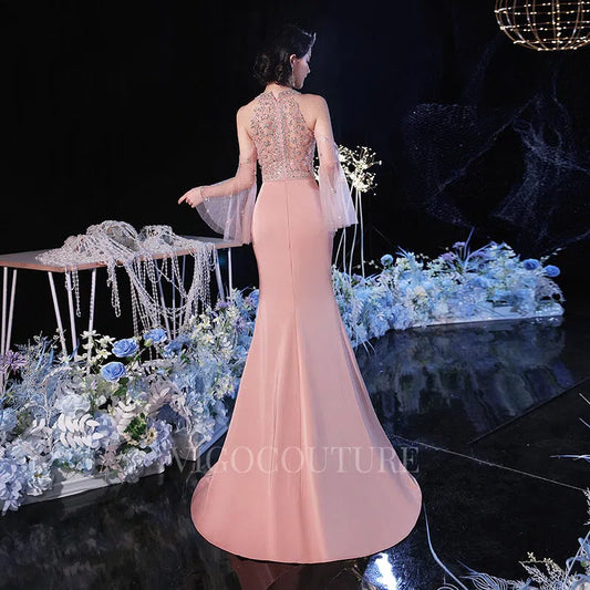 Vestidos de fiesta de sirena con cuentas rosas 20122