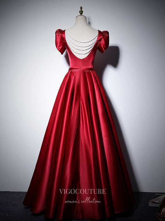 Vestidos de fiesta económicos con mangas abullonadas y escote plisado de satén, vestido formal 24154