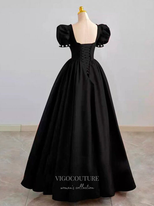Vestidos de fiesta de satén con mangas abullonadas y cuentas 21066
