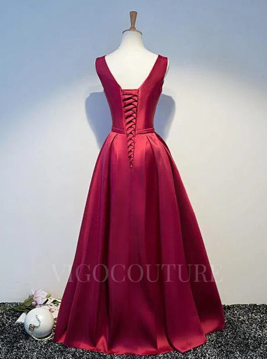 Vestido de fiesta de satén de corte A 2022, escote en V pronunciado, sin mangas