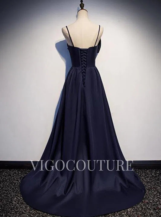 Vestido de fiesta de satén con corte A y tirantes finos 2022