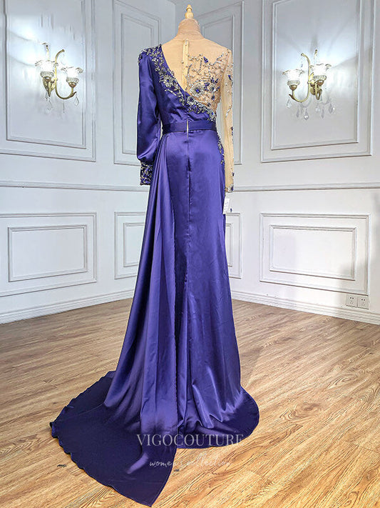 Vestidos de fiesta de satén con cuentas y manga larga, vestidos formales 21237