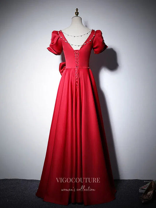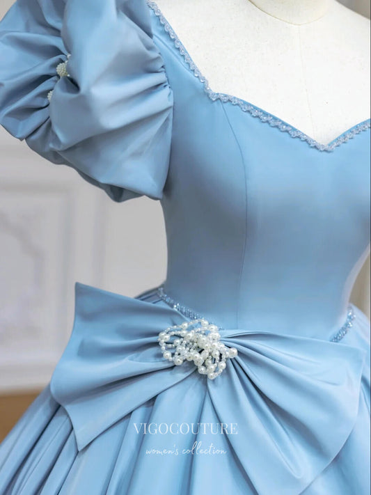 Vestidos de fiesta de satén con mangas abullonadas, vestidos formales 21059