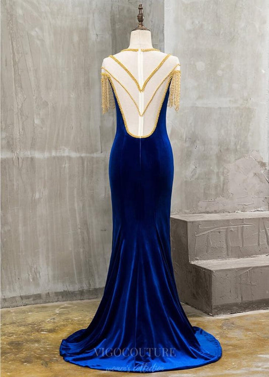 Vestidos de fiesta de satén estilo sirena con abertura en el escote, tirantes finos y corpiño con varillas y cuentas – 25155