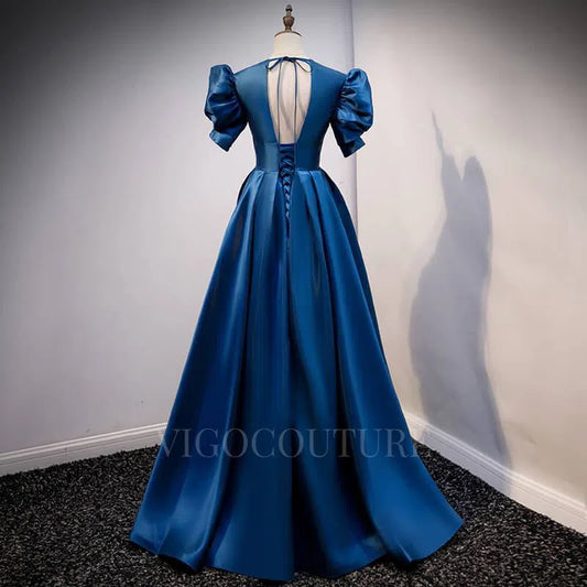 Vestido de fiesta de satén con mangas abullonadas y escote en V 2022 20346