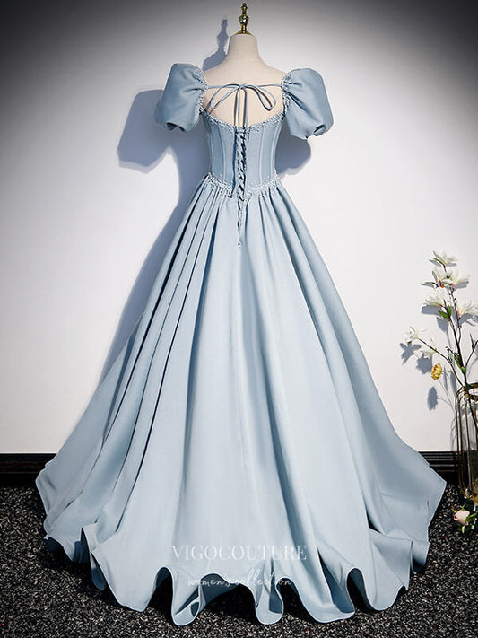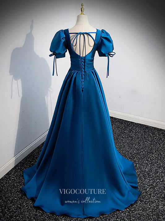 Vestido de fiesta de satén con mangas abullonadas y escote corazón, vestidos formales 21339