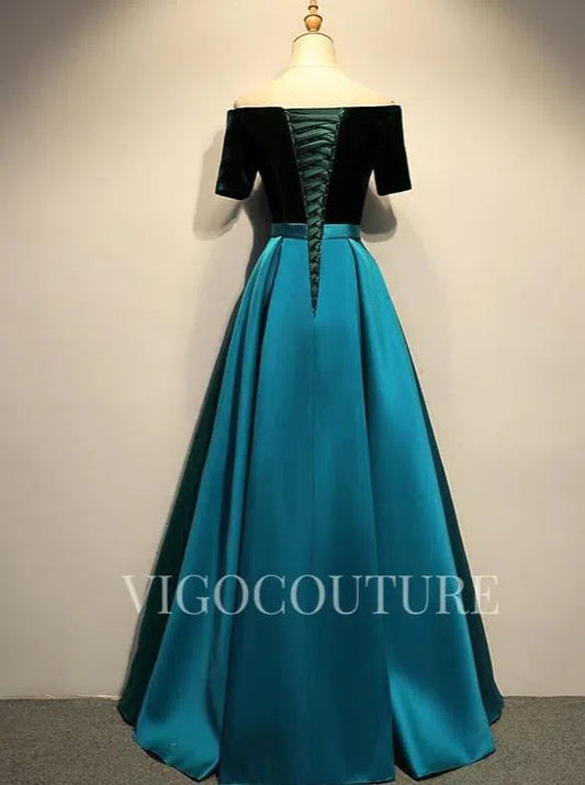 Vestido de fiesta de satén y terciopelo con hombros descubiertos 20287