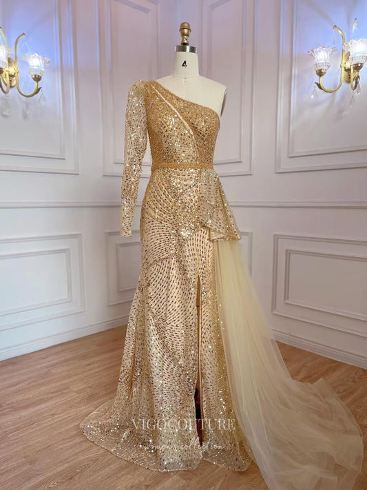 Vestidos de fiesta con lentejuelas y cuentas, con abertura en el hombro, vestido de noche 22115