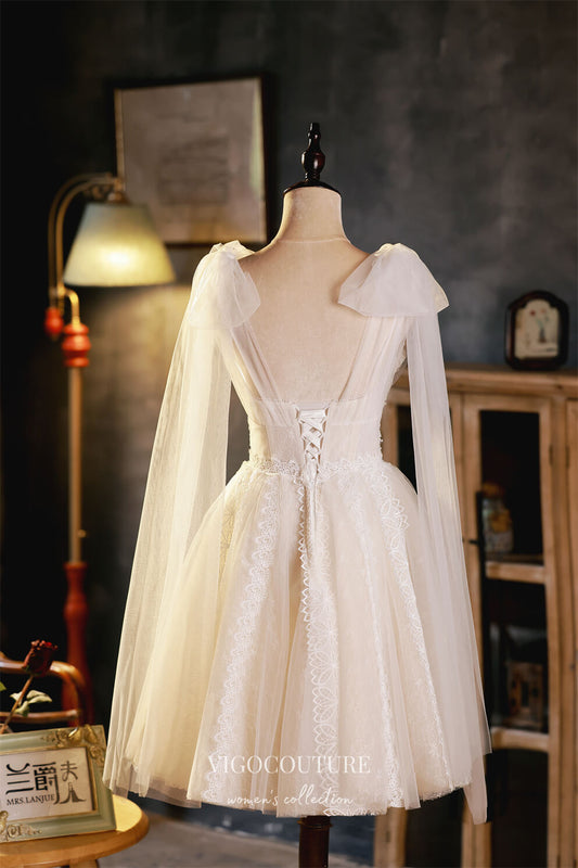 Ivory Lace Homecoming Dress with Pearl-Embellished Corset & Tiered Tulle Skirt – HC485