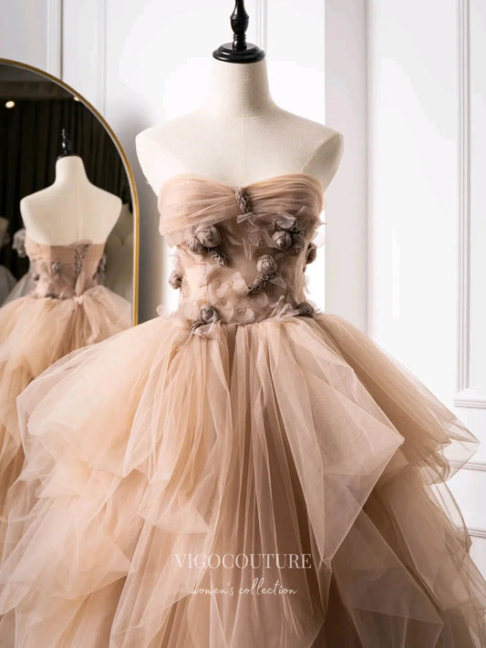 Vestidos de fiesta de tul floral sin tirantes, vestido formal 21185
