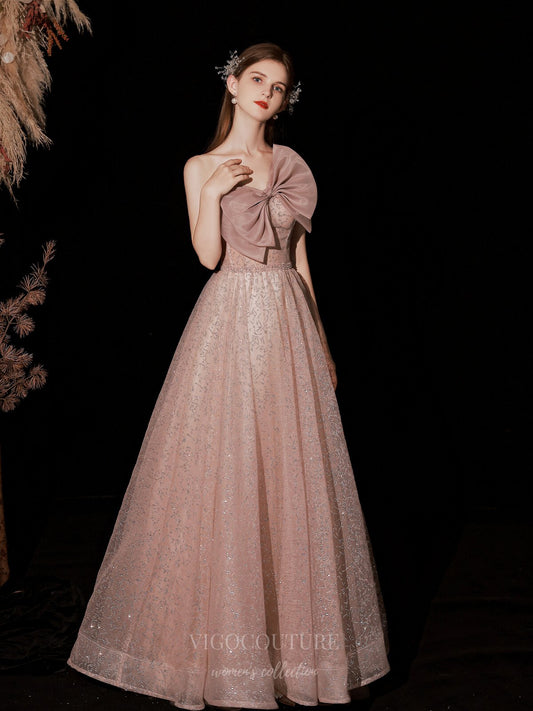 Vestido de fiesta de tul brillante sin tirantes color rubor 20742