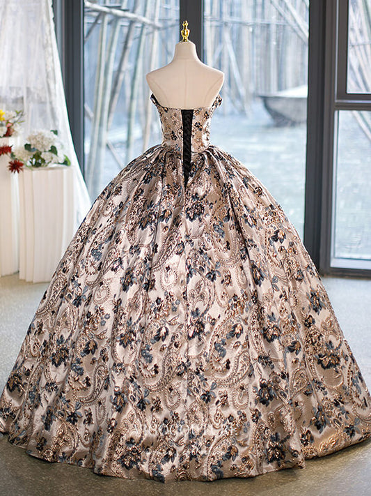 Vestido de fiesta de satén jacquard color champán, sin tirantes, para quinceañera, 22355