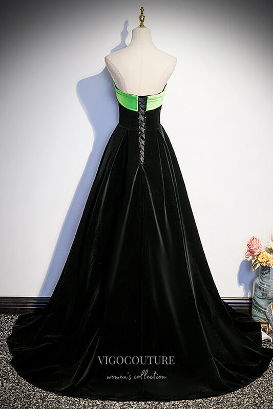 Elegante vestido de fiesta de terciopelo negro sin tirantes 22267