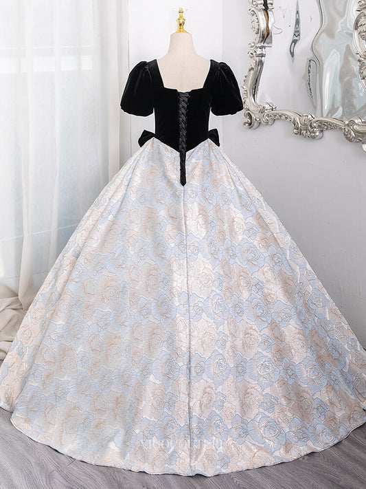 Elegantes vestidos de fiesta de jacquard con manga corta y escote de terciopelo, vestidos de quinceañera BG014
