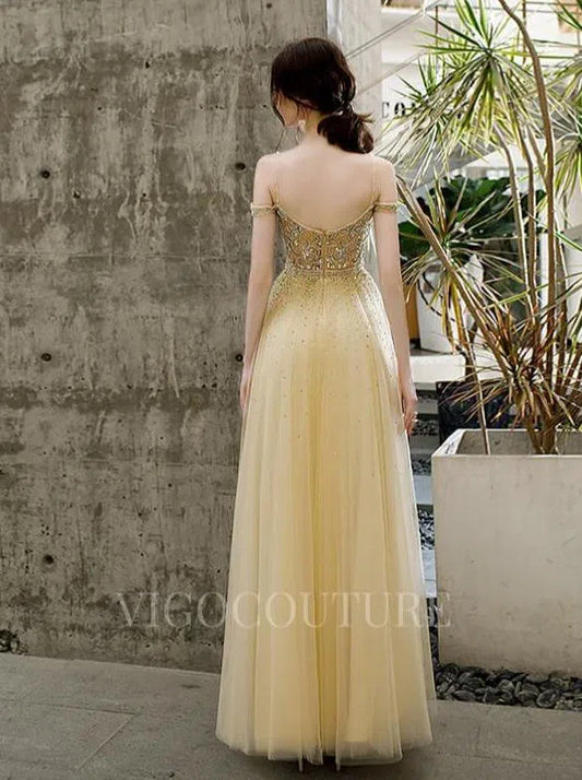 Vestidos de fiesta con tirantes finos, corte A y cuentas 20176