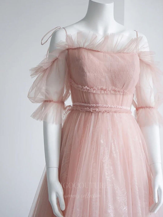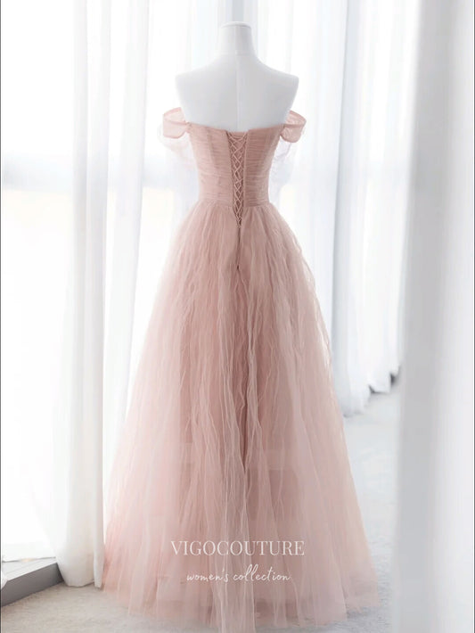 Vestido de fiesta de tul plisado con hombros descubiertos, color rubor, 22058