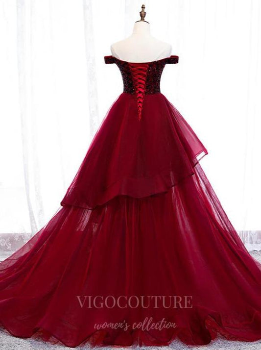 Vestido de fiesta rojo oscuro con escote en V y hombros descubiertos 2022 20549