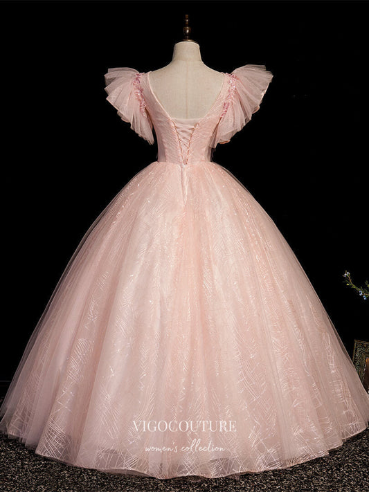 Vestidos de quinceañera con apliques de encaje ruborizado y tul brillante para dulces 16 21408