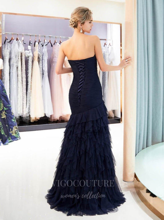 Vestido de fiesta de tul con volantes cruzados, escote corazón y espalda estilo corsé, sin tirantes y cruzado - 20286
