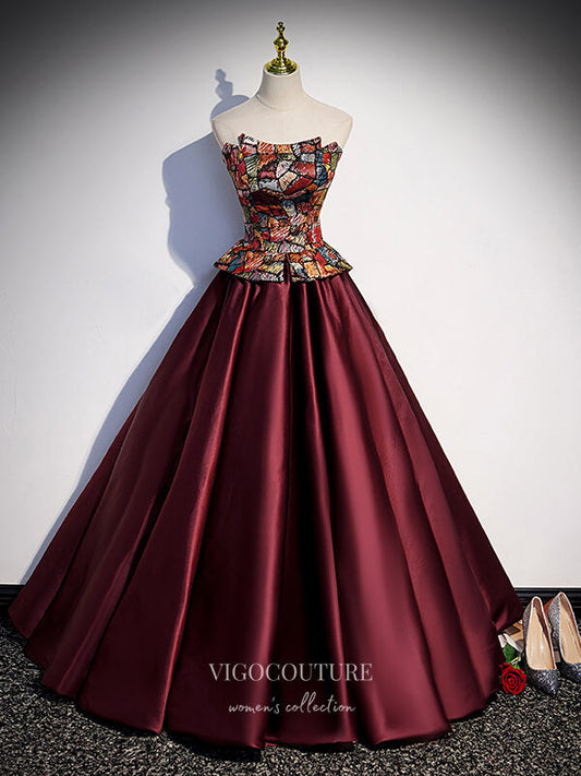 Vestidos de fiesta de satén burdeos con mangas desmontables 21436