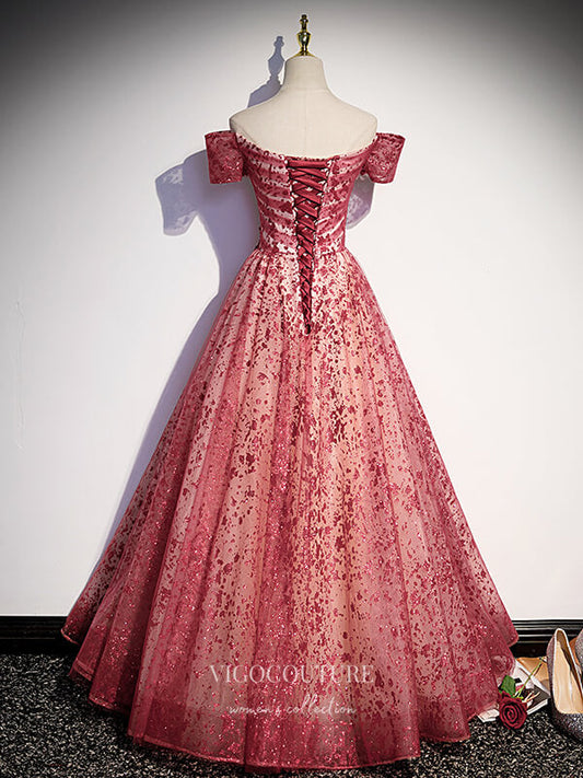 Vestido de fiesta rosa ruborizado brillante, sin tirantes, con encaje y cuentas - 20824