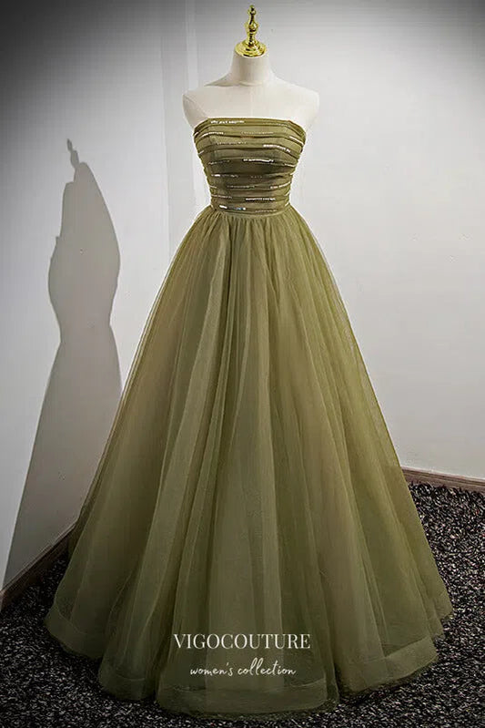 Vestido formal verde oliva con mangas abullonadas extraíbles, vestidos de fiesta 21659