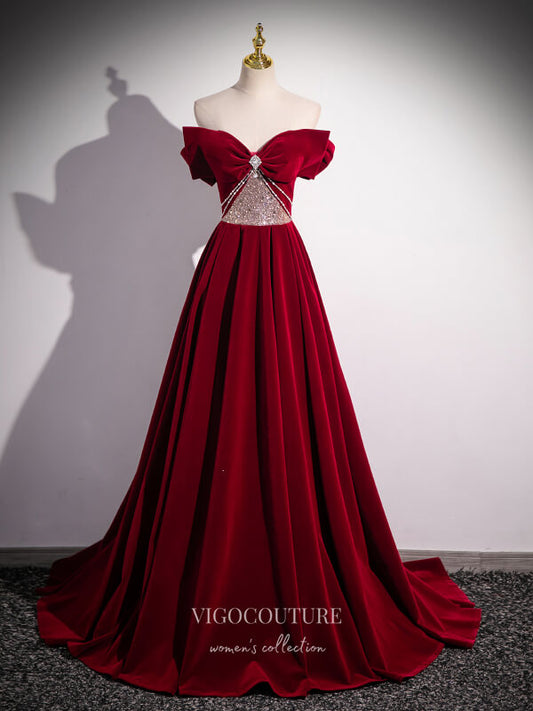 Vestido de fiesta convertible de terciopelo burdeos con lazo y cuentas 24422