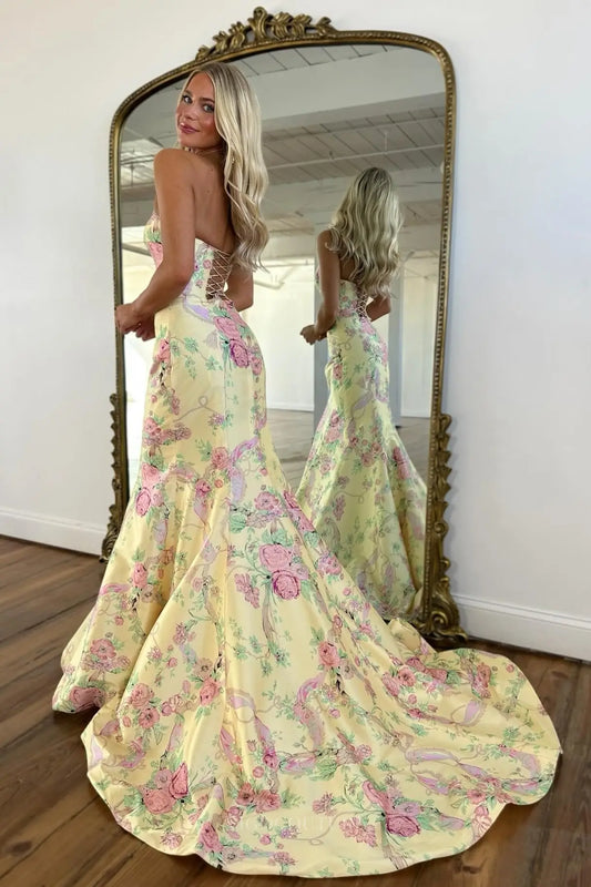 Vestido de fiesta de satén con escote alto y corte sirena 20083