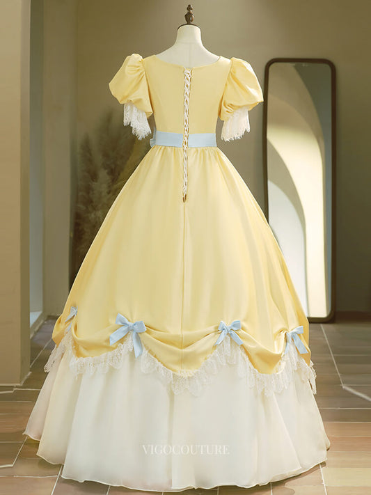 Hermosos vestidos de fiesta de satén amarillo con mangas abullonadas, lazo y encaje, vestidos de quinceañera BG021
