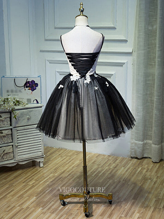 Vestidos de fiesta con apliques de encaje negro y tirantes finos hc096