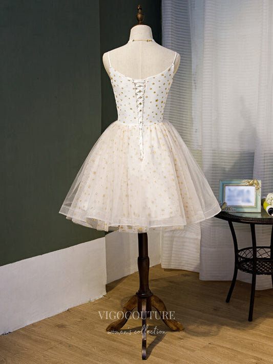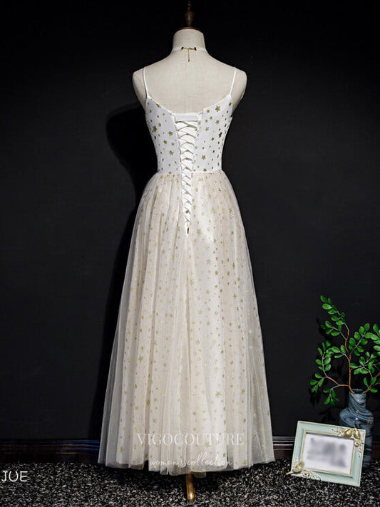 Vestidos de fiesta con estrellas color champán y tirantes finos hc094