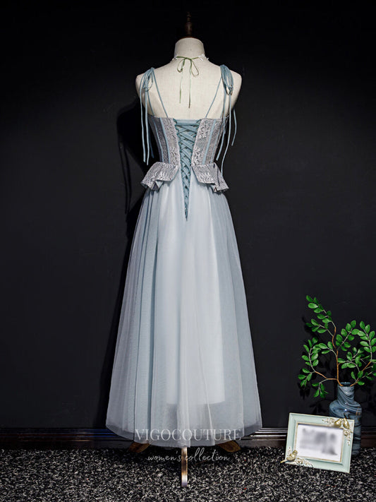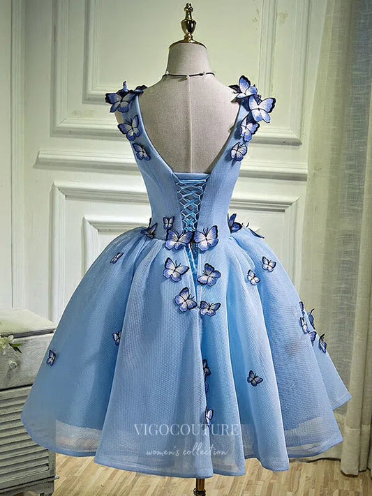 Vestido azul claro de mariposa con escote en V para dama hc095