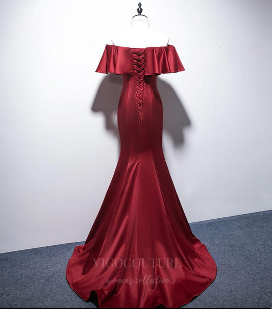 Vestido de fiesta rojo de sirena con hombros descubiertos 20669
