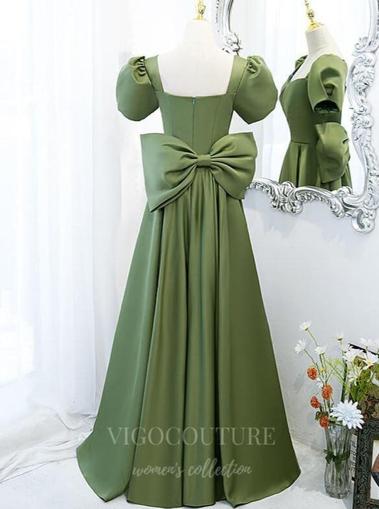 Vestidos de fiesta color oliva con mangas abullonadas 20508