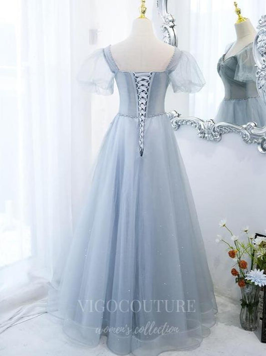 Vestido de fiesta de tul brillante con mangas abullonadas 20509