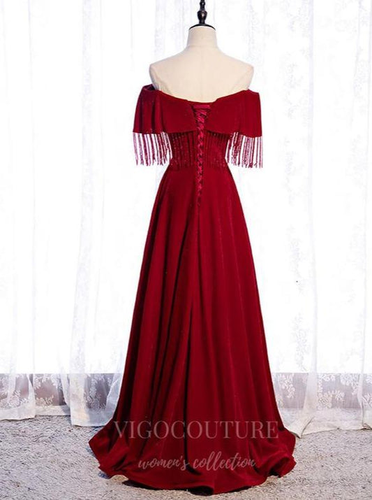 Vestido de fiesta rojo oscuro con escote en V y hombros descubiertos 2022 20549