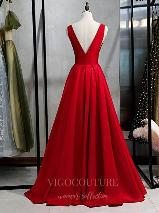 Vestido de fiesta rojo con escote en V pronunciado 2022, vestido formal de satén 20550