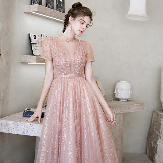 Vestido de fiesta con cuentas ruborizadas 2022, vestido de fiesta de cuello alto
