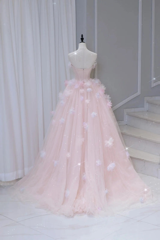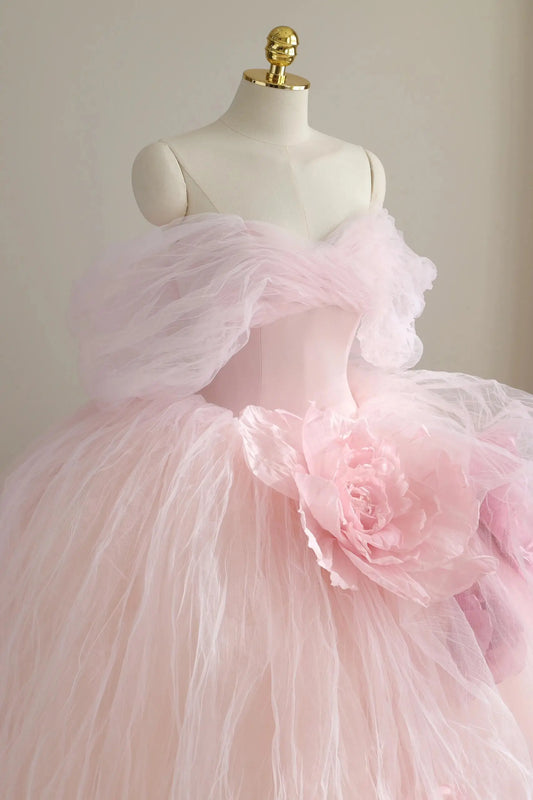 Vestido de quinceañera romántico de tul rosa con flores 3D – Vestido de princesa con hombros descubiertos 25304