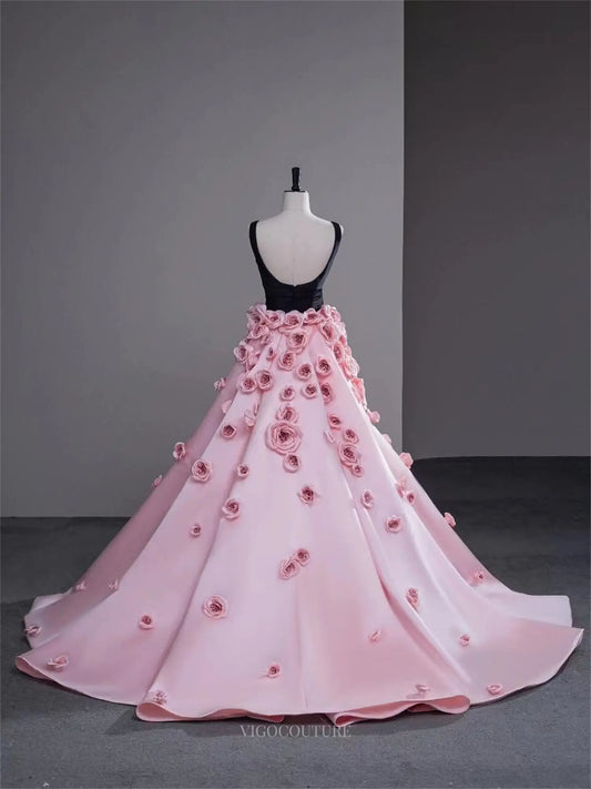 Lujoso vestido de quinceañera rosa sin tirantes con detalles florales en 3D y detalles brillantes – Estilo 25303