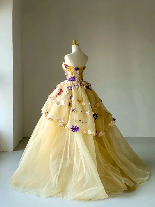 Rosalune - Vestido de princesa floral amarillo