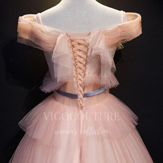 Vestido de fiesta de quinceañera con apliques de encaje ruborizado y hombros descubiertos 20459