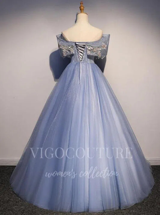 Vestidos de quinceañera azul polvoriento con hombros descubiertos 20457