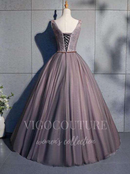 Vestidos de quinceañera con cuentas grises y escote en V 20448