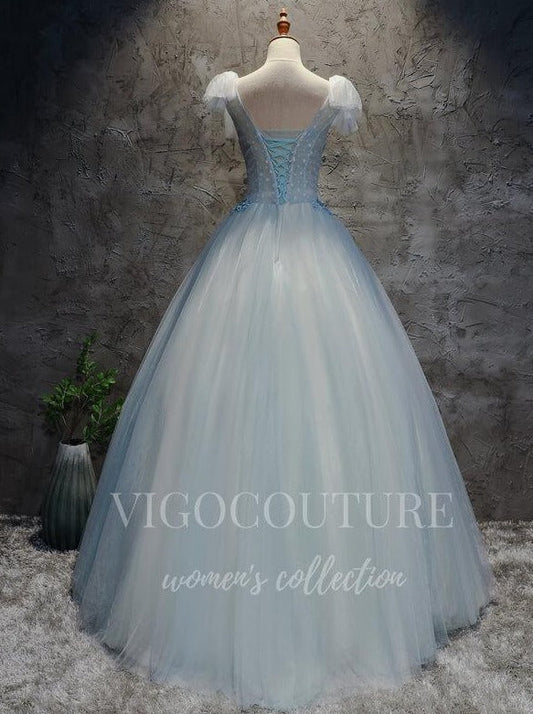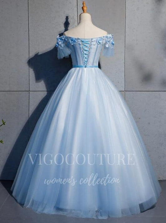 Vestidos de quinceañera azul claro con apliques de encaje 20442